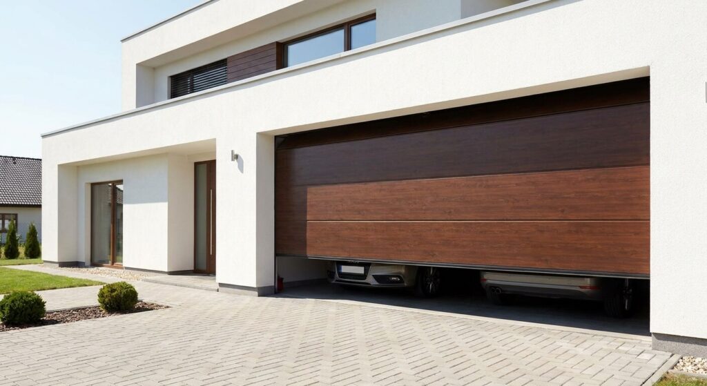 Le design ne doit pas être sacrifié au profit de la seule fonctionnalité technique. Les fabricants proposent aujourd’hui une vaste gamme de finitions, allant des aspects bois traditionnels aux teintes contemporaines comme le gris anthracite. L’intégration de hublots en double vitrage est une option très prisée pour apporter de la lumière naturelle à l’intérieur du garage, évitant ainsi l’usage systématique de l’éclairage électrique. Cette personnalisation permet d’harmoniser la porte de garage avec la porte d’entrée ou les fenêtres pour une cohérence visuelle valorisante. On peut également choisir des décors en aluminium brossé qui cassent la monotonie des panneaux lisses, offrant une signature architecturale unique à votre pavillon qui se distinguera nettement dans votre quartier.