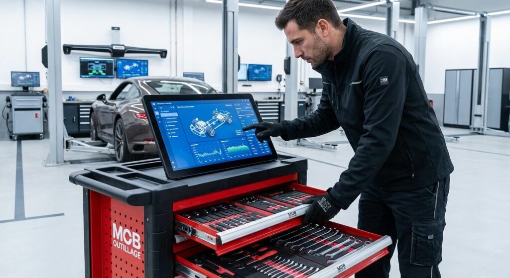 D’autres professionnels se tournent vers la servante connectée. Ces modèles embarquent des innovations telles que la géolocalisation des outils et le suivi automatique du contenu. Fini les pertes ou les oublis dans le garage : une alerte peut être envoyée si un tournevis manque à l’appel. On pense aussi aux systèmes électroniques qui, notamment, améliorent la sécurité. Ces foncions ultra-pratiques facilitent la vie des équipes mobiles ou des ateliers où la rotation du matériel est fréquente.